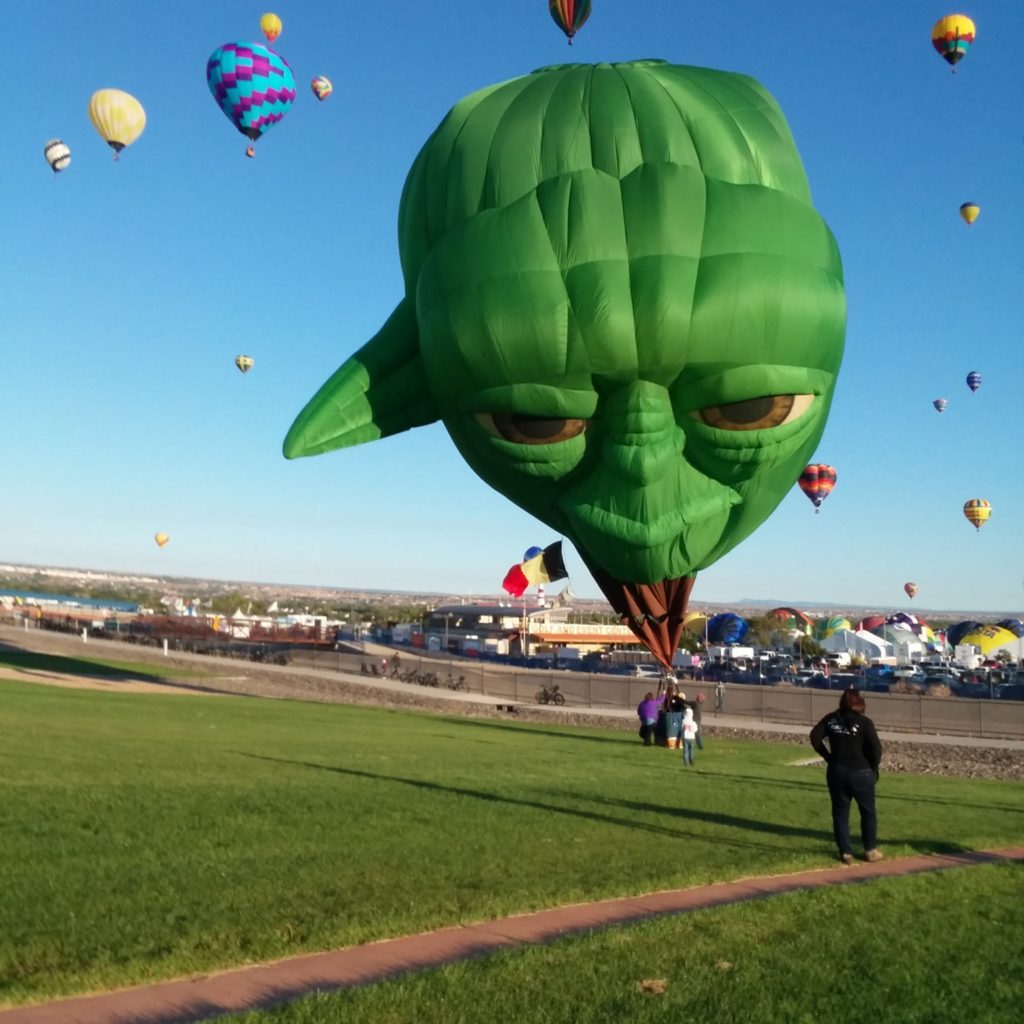 There was some excitement after Mass Ascension. The Yoda balloon actually barely cleared the field fence and set down right in the lawn of the Balloon Museum where we were spectating from. My girlfriend and I went rushing down to assist the pilot and corral the balloon.