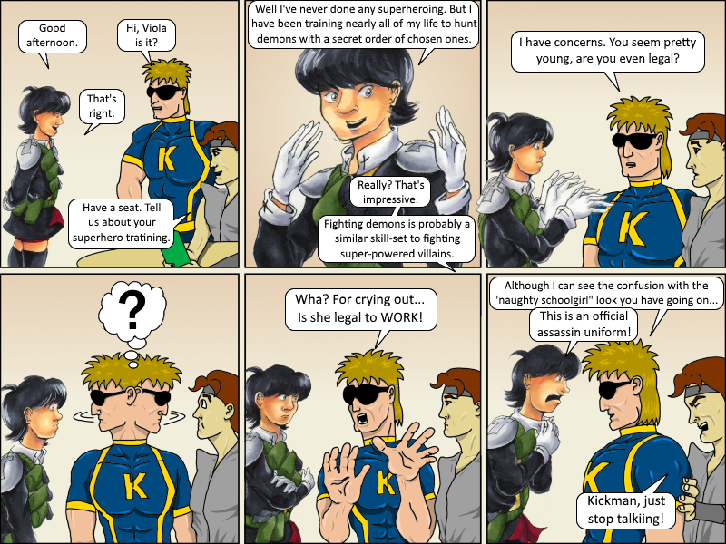 Viola is visiting from the webcomic Vatican Assassins. Protecting the world from Hell! Three best friends use their divine powers as part of the Vatican’s secret militia!
