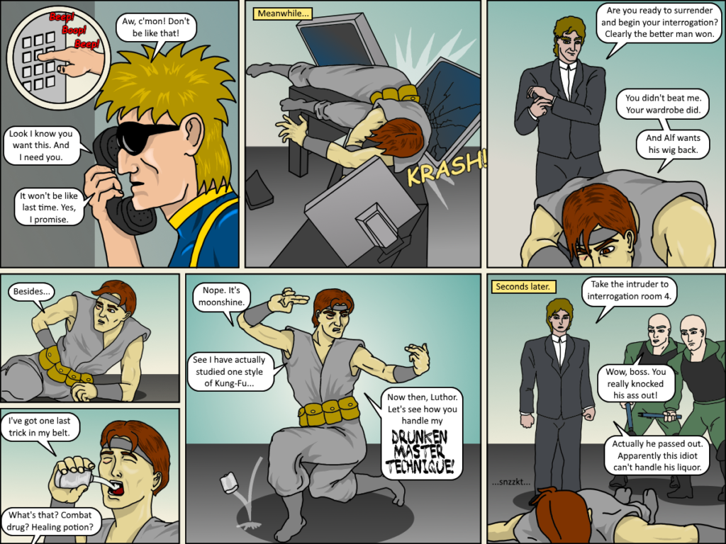 Separate Ways 011 Feb18 by Matt on February 18, 2018 at 8:00 am Chapter: 11 Separate Ways Who could have possibly predicted that getting yourself drunk first wouldn’t help you win a fight? 6 Comments
