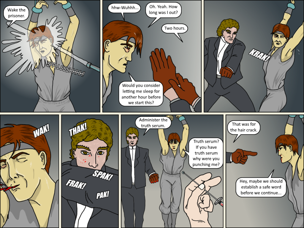 Separate Ways 012 Feb25 by Matt on February 25, 2018 at 8:00 am Chapter: 11 Separate Ways It’s all fun and games until you get beaten up by your captor. 4 Comments