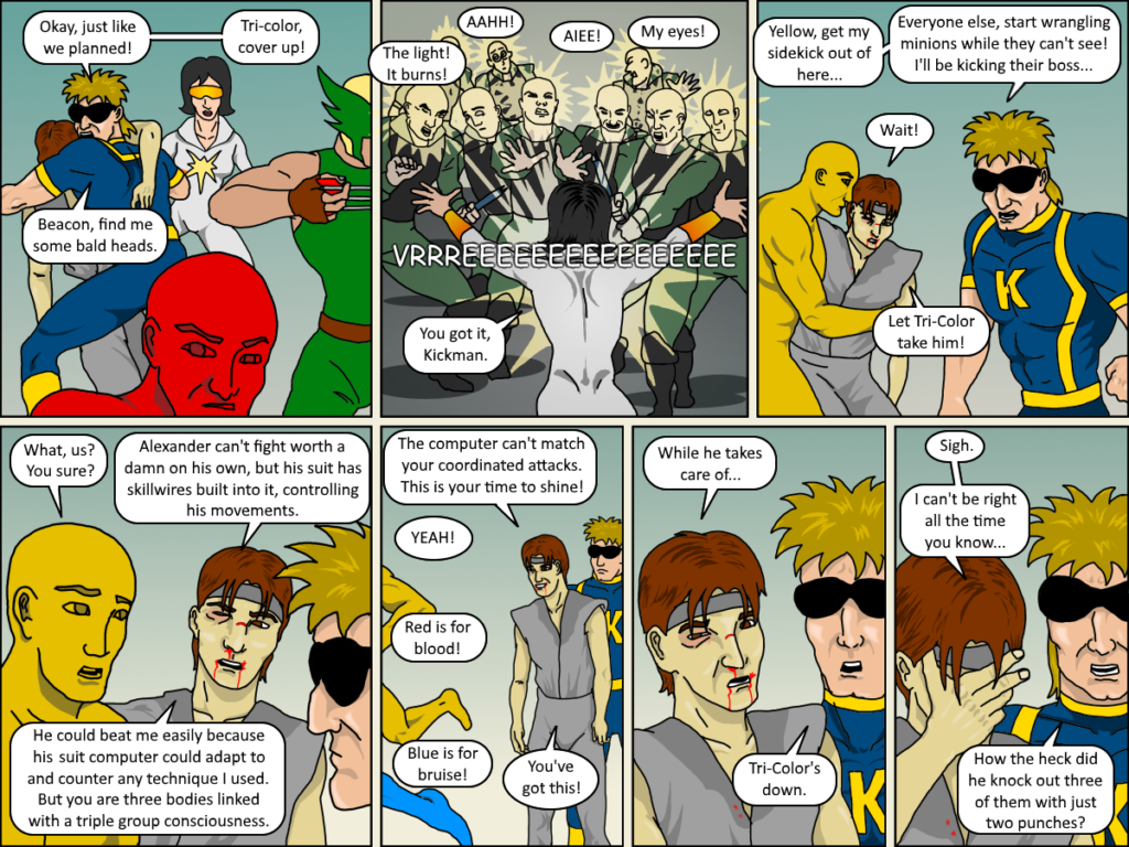 So Beacon’s power is to shine bright light at anything that she can’t see. Very useful for when she can’t find her car keys. That’s also why she wears those mirrored goggles… Since the only way for her to use[…]↓ Read the rest of this entry…
