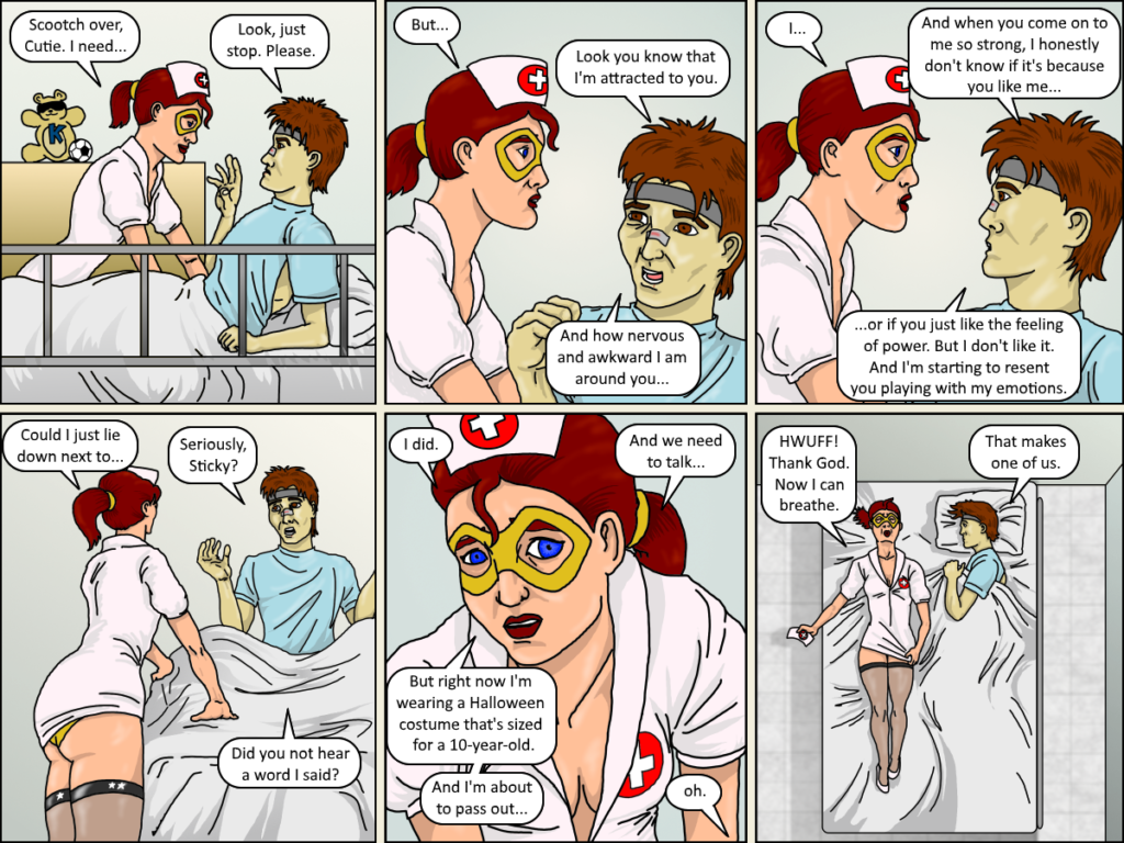 It’s about time Generic Kung-Fu Superhero Sidekick and Sticky Buns figure out what’s going on between them. This whole Private Lives chapter reminds me of Uncanny X-Men #174. Look it up.