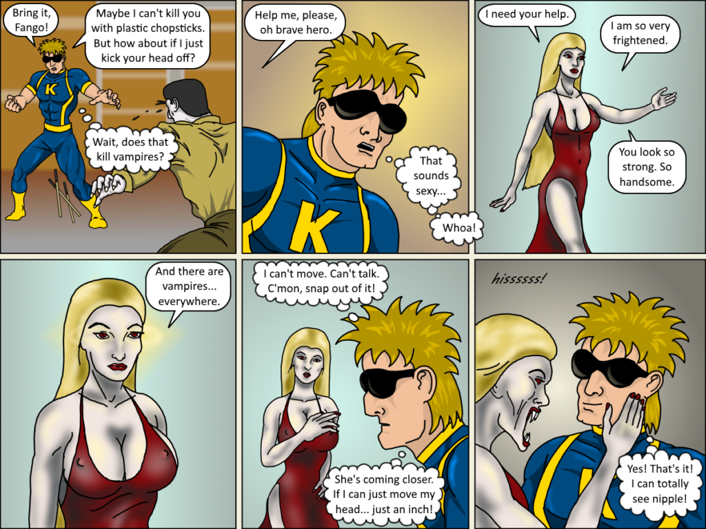 w-w-w-Worth it! So far all the vampires have been bitey and hissy… Enter, super sexy vampire chick in a dress that was apparently made on Krypton. Can anyone guess her name?