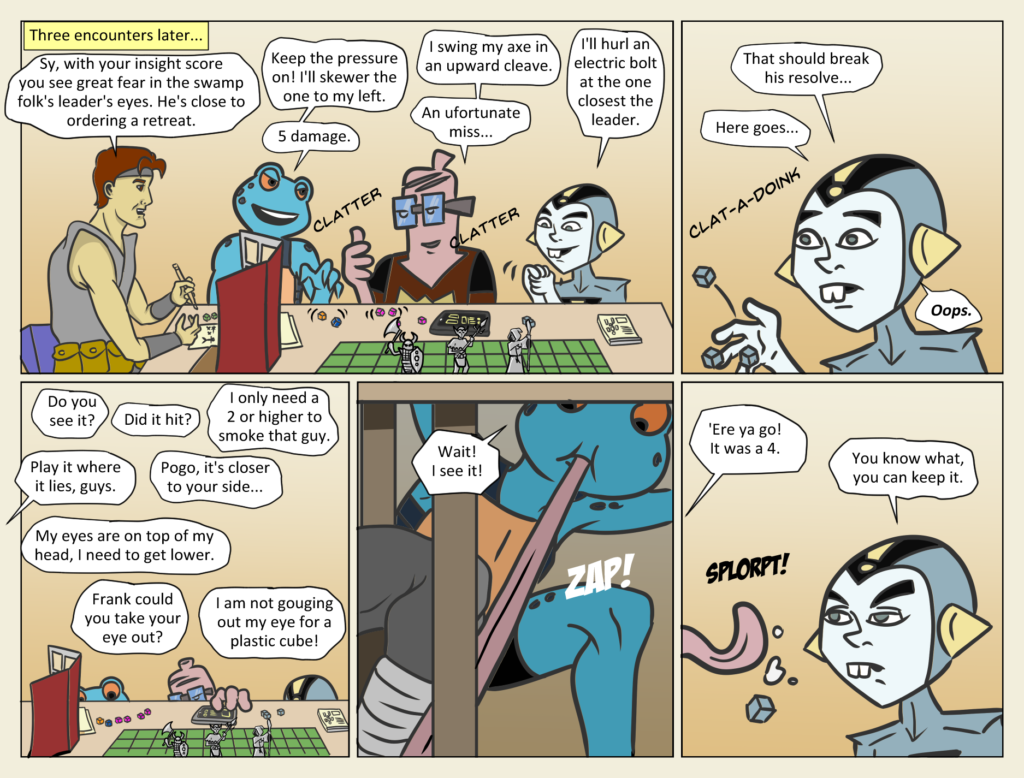 Pogo’s got game. Pogo is a character from the webcomic Adamant created by Mike Exner III. Thrust into the far future by his greatest enemy, Adamant arrives in a world that’s been transformed into a dystopian nightmare primarily due to[…]↓ Read the rest of this entry…