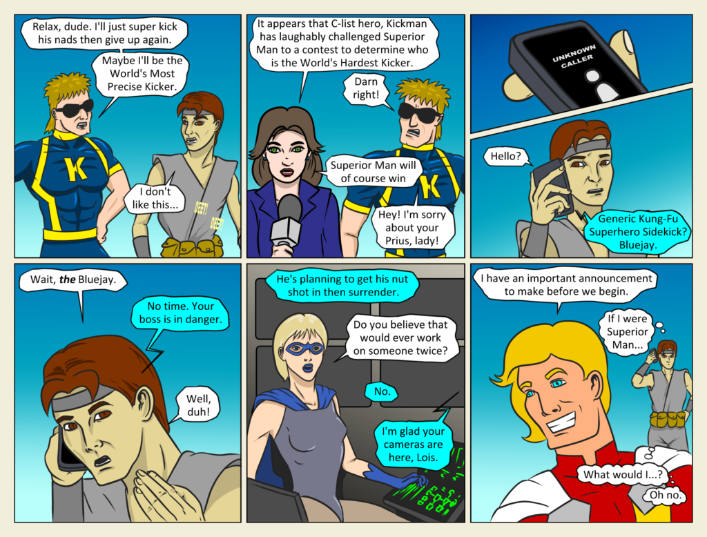 What is Superior Man’s plan? Is he less stupid than he looks? Find out next week! Posting this page from Longs, South Carolina. Successfully journeyed here over the course of two days from Hawaii. The airports were empty, the planes[…]↓ Read the rest of this entry…