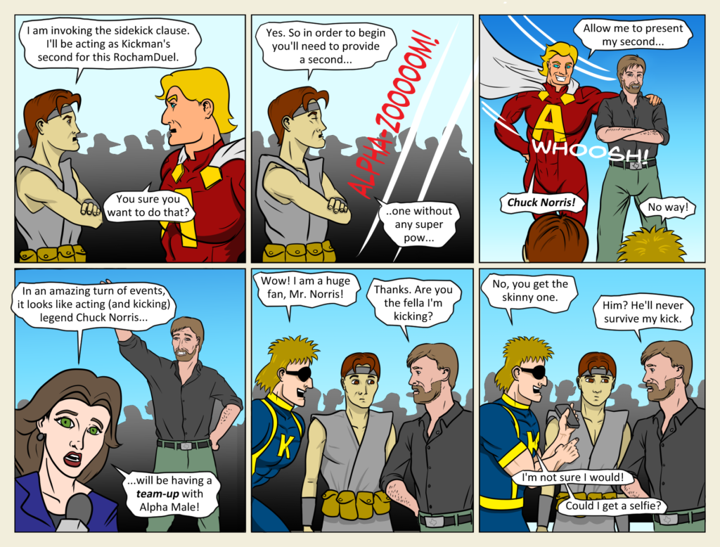 That was a total backfire. If anyone is friends with Chuck Norris on Facebook or Instagram or Twitter or whatever, could you please let him know that he is guest starring in my comic. I think he had more lines[…]↓ Read the rest of this entry…