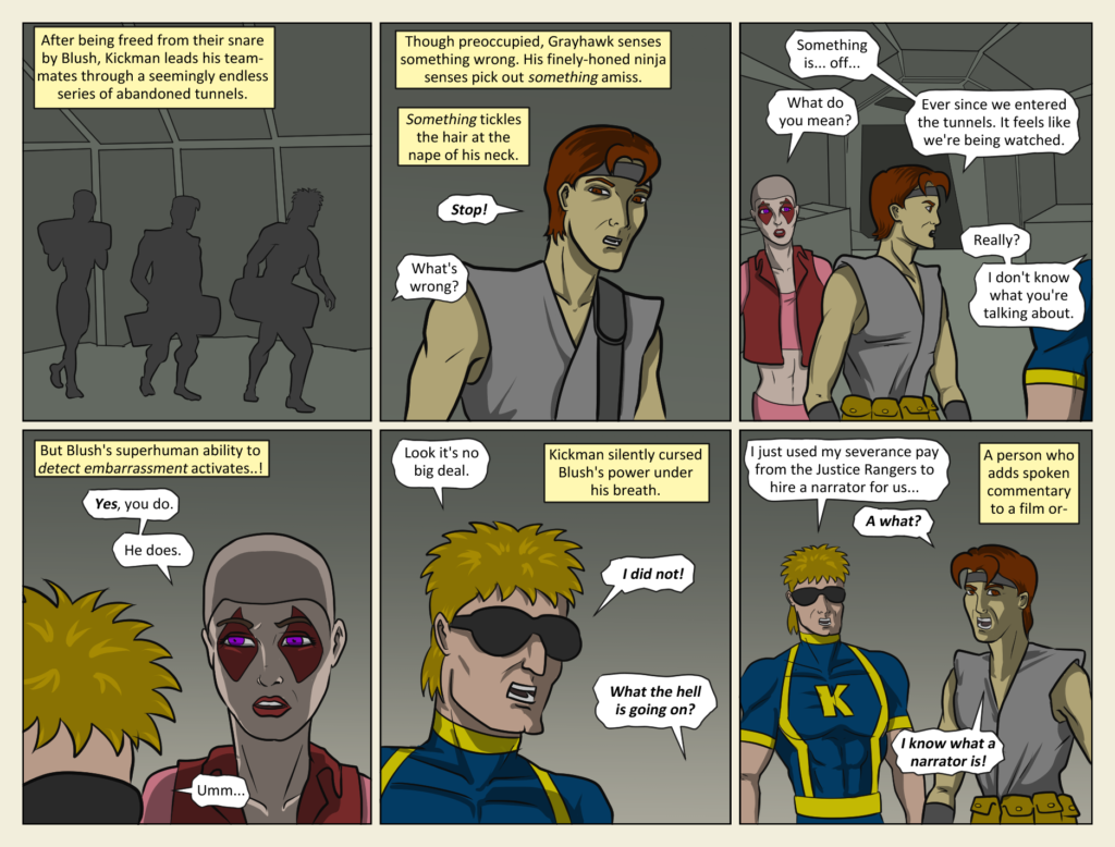There goes the fourth wall! Again! I’m surprised no one called me out on the narrator text on the first page of the chapter. I usually only use them for a “Continued” or to establish a location like “Mom’s House[…]↓ Read the rest of this entry…