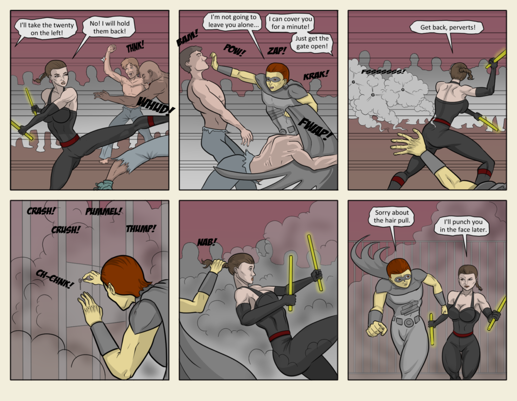 Grayhawk and Elizabeth St. Augustine, reliving their past adventures together. Go back and read the chapter “Bloody Mary” for more on the hair pull and the punch to the face.