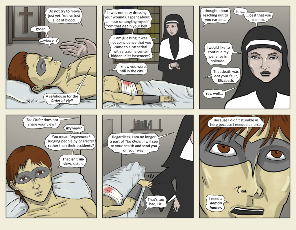 I thought for sure a bunch of readers would have chimed in last week, “Hey, a nun! There was a nun in this comic previously! That must be so-and-so!” For those of you that just now realize who she is…[…]↓ Read the rest of this entry…