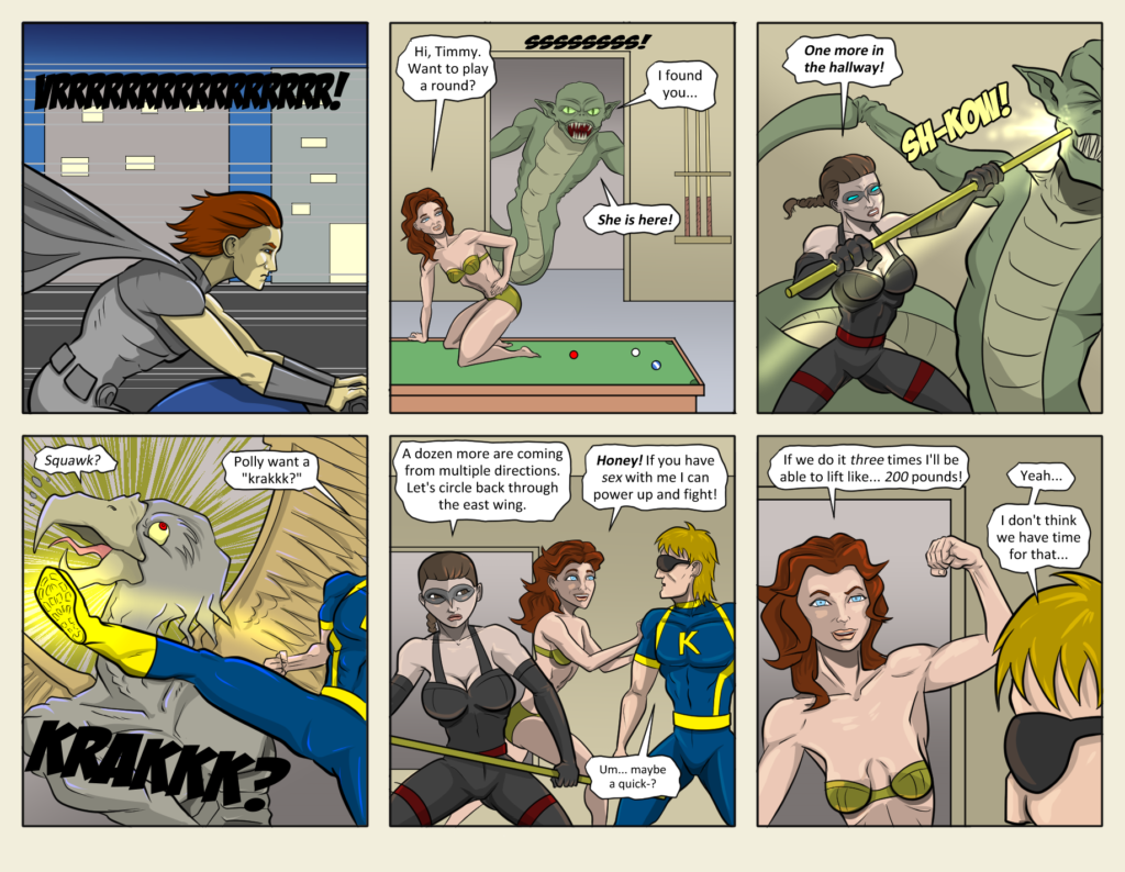 Sex three times only makes her about as strong as a really, really strong normal human woman (as well as give her slightly pointed ears and nubs of horns). Which, in Mutants & Masterminds terms is about Power Level 1.[…]↓ Read the rest of this entry…