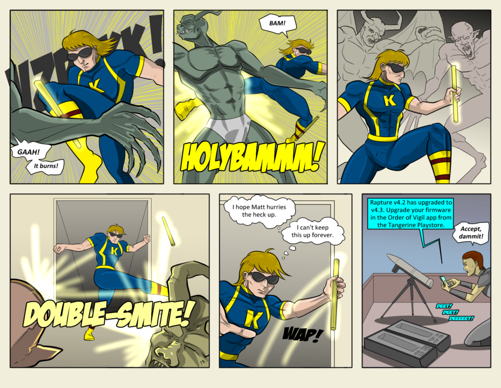 Not a lot of banter, just some world class kicking. Wanted to highlight that Kickman’s skill with kicking is right up there with Daredevil’s skill with throwing around that billy club of his. Hopefully Grayhawk will stop dragging his heels[…]↓ Read the rest of this entry…