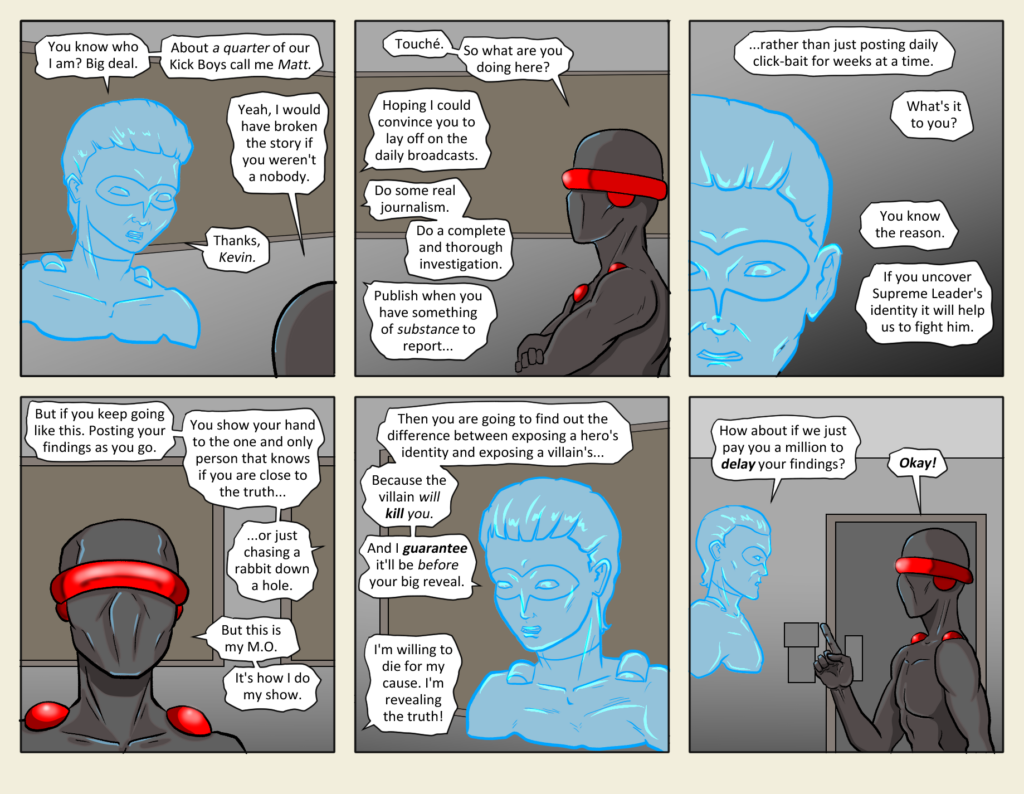 When appeals to self-preservation fail, there is always the buyout option. Remember, Team Kick did score a pretty big financial windfall off of Mayor Death Jester and the faked assassination attempt by that pseudo-Canadian assassin. Sure, they’ve been spending money[…]↓ Read the rest of this entry…