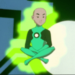 And Greenhawk’s pose in panel 2 is taken directly from the cover of Tao of Jeet Kune Do. I never really thought about which Green Lantern from the comics is most like Green Ring. He’s not as serious as Hal, as ordered as John, as imaginative as Kyle, and too nice a guy to be Guy. If anything, he’s more like Wally West. But as for Grayhawk with a Green Lantern ring, he’d be most like that bald Buddhist monk Green Lantern from the cartoon Justice League in the timeline of Batman Beyond.