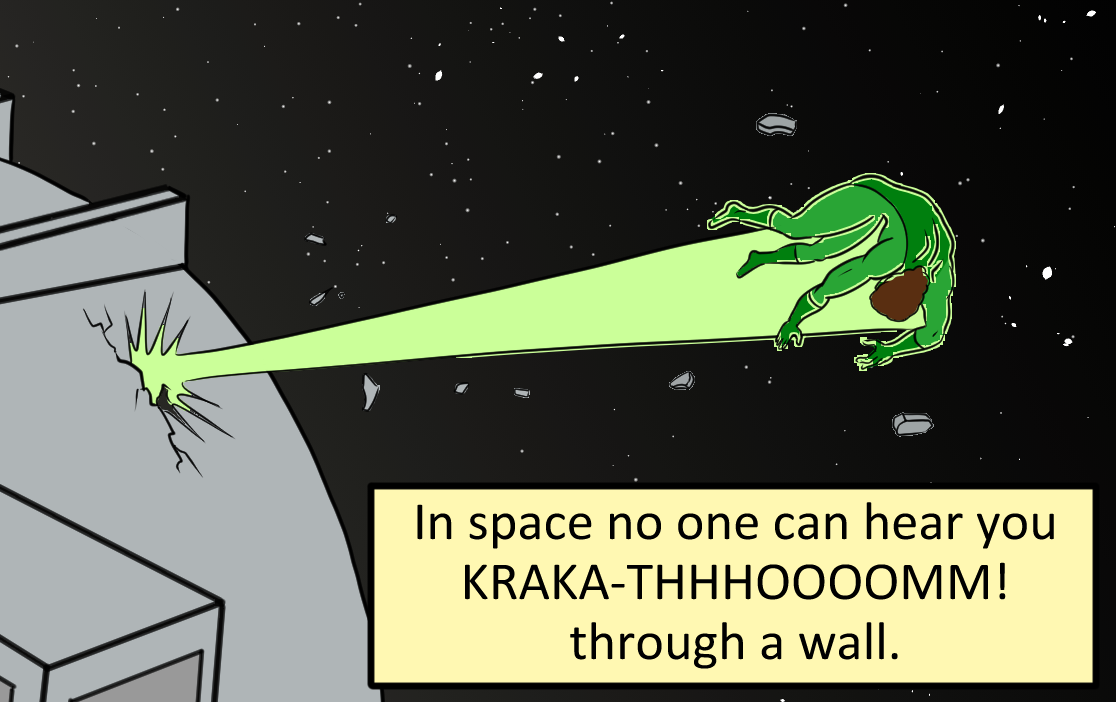 He’s been flying through space without food and water for about a month. Luckily, he managed to surround himself with a life-support cocoon before blasting out of the satellite headquarters. So as long as the glowing, green, wish-granting fairy stayed alive, so did he. Think I’m ret-conning that? Nope. Check it out, Chapter 20, page 11. See? He’s totally still got his green aura around him!